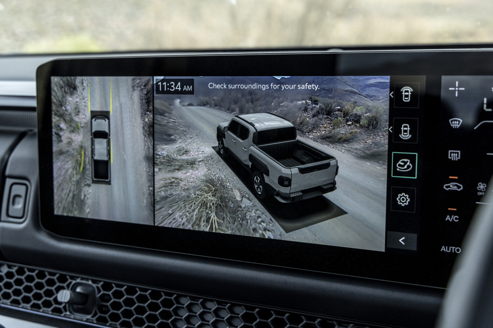 Selectable drive modes — including Eco, Sport, Normal, and Tow — are complemented by dedicated terrain settings for low-grip conditions, allowing the vehicle to adapt to surfaces such as sand, mud, and loose gravel.